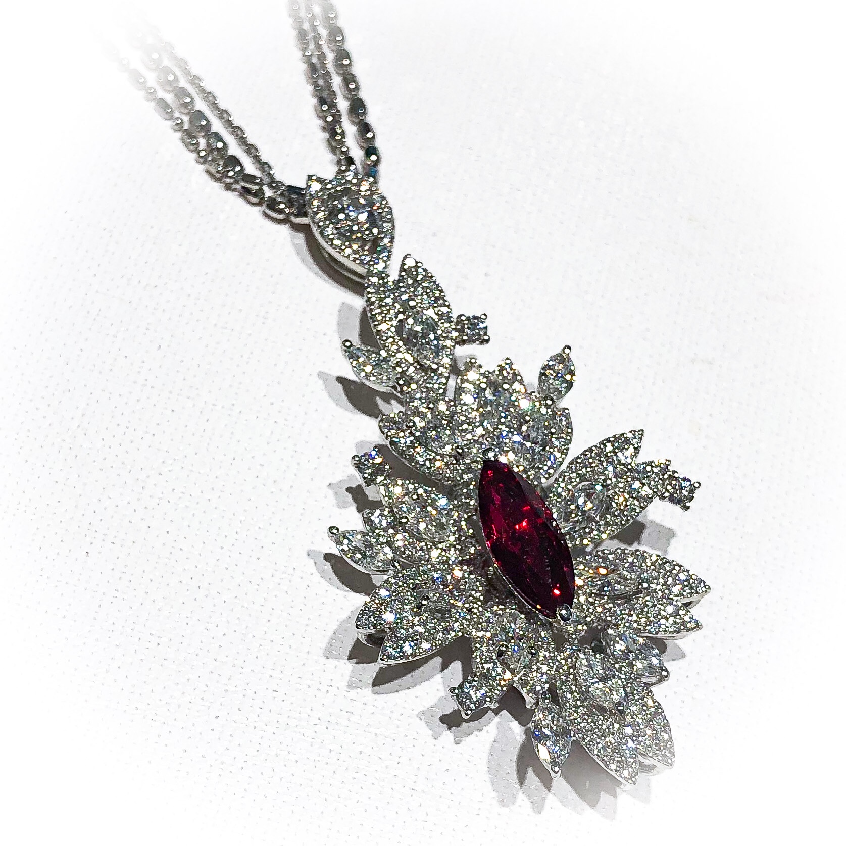 ルビーペンダント 2020年11月6日 by ijima タンザニア産 ノーヒートルビー 中石は、タンザニア産のNO HEAT(非加熱)ルビー 2.016ctを使用しています。 ダイヤモンド 1.45ct / 1.62ct / ペンダントカンの上には、0.188ct IF のダイヤモンドが付いている。 枠、チェーンともにプラチナを使用した、メイドインJAPANの作り。