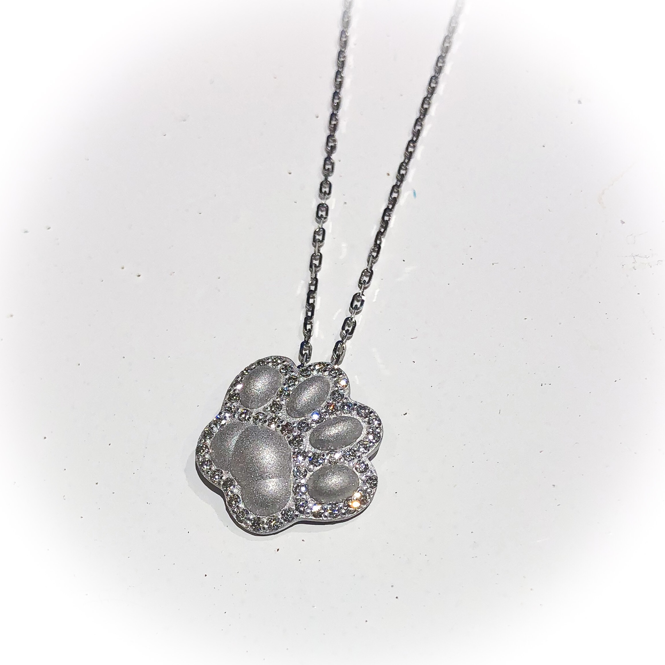 肉球ペンダント 2020年11月18日 by ijima K18WG 肉球 猫好きには、堪らない肉球(笑) 可愛い肉球にダイヤモンドを詰め込んでペンダントにしてみました。 注目されること間違い無し^_^ 税込15万円