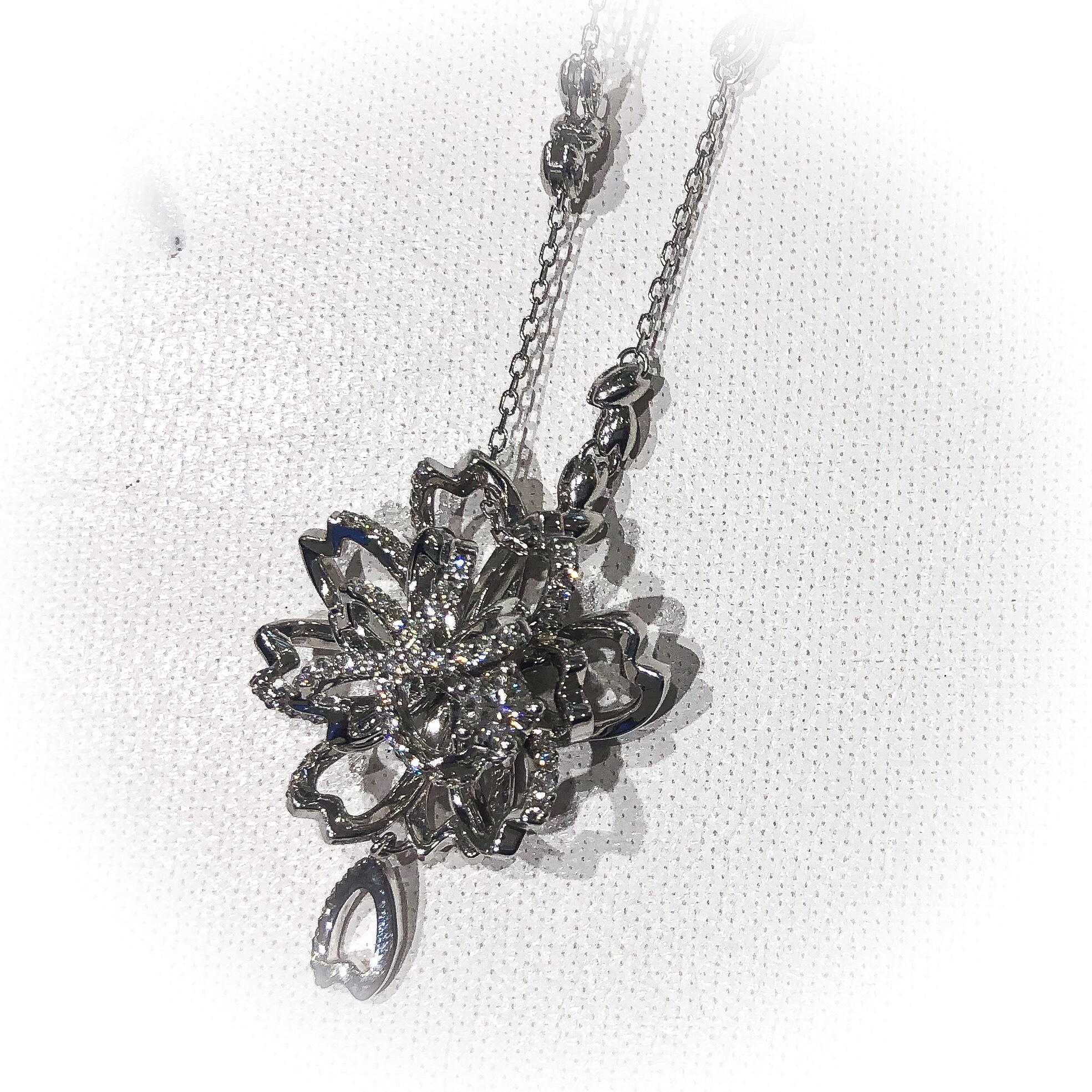 お花見 2021年2月17日 by ijima サクラダイヤペンダント 昨日ご紹介したサクラダイヤペンダントのホワイトゴールドバージョン。 イエローゴールドより、質感に高級なイメージが出ますね。 同じホワイトゴールドやプラチナのリングなんかも合わせ安いです。 メインのサクラダイヤは、0.159ct F VVS1を使用しています。脇石は、0.25ct 定価550,000円 2月末まで30%OFF
