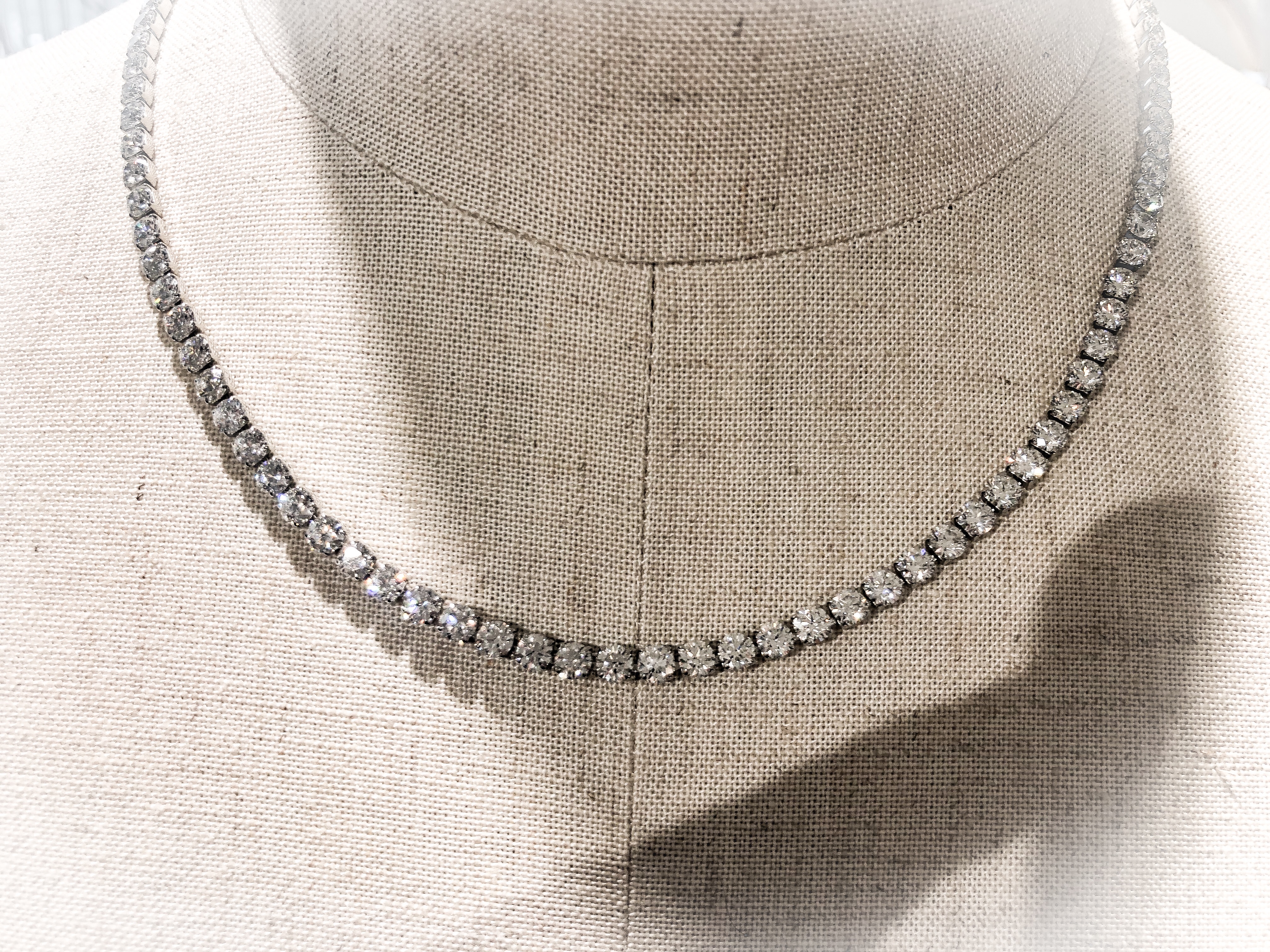 ダイヤフルネックレス 2021年2月23日 by ijima ダイヤモンドフルストレートネック ダイヤモンドのフルネックレスはよく見かけますが、大きさをストレートに揃えた商品は珍しい。 合計20.03ctと大きなサイズにもかかわらず、爪が小さく目立たないので、スッキリと見えて、派手さや豪華さを消している。 まさに品よく出来上がっています。
