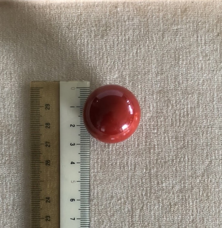 血赤珊瑚30mm丸珠 2021年3月2日 by ijima 写真の品物は、もう幻と言われている「血赤珊瑚」 30mm の大きさの真円丸珠は、更に希少です。 通常、白い麩があるのだが、裏側に、ほんの僅かな白点があるのみ。 もちろん無穴状態ですから、販売決定後にユーザー様のご意向でその箇所に穴を開けます。 ちなみに、価格は1500万円となります。 三月の誕生石
