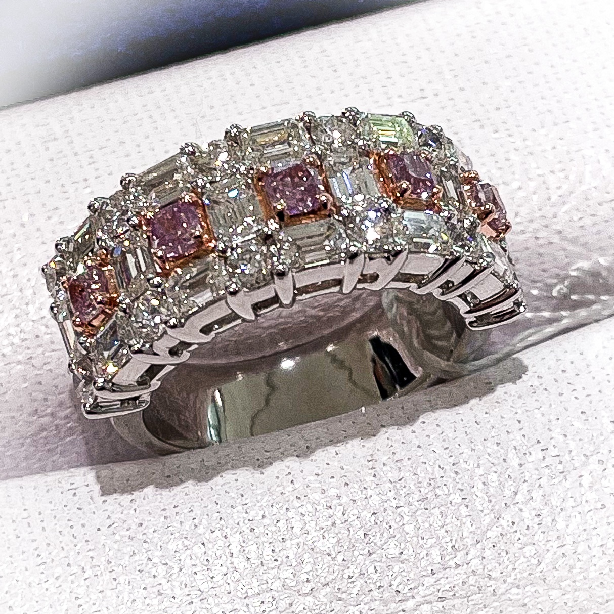 エクレブ PD 0.53 WD 2.53 2021年4月6日 by ijima エクレブ新作 ピンクダイヤモンドを贅沢に取り混ぜた3文字型リング ピンクダイヤ 5ピース 合計 0.50ct ホワイトダイヤモンド 合計 2.53ct WG枠も地金がしっかりと肉付けされていて、重量感もありボリュームあるピンクダイヤファッションリングです。