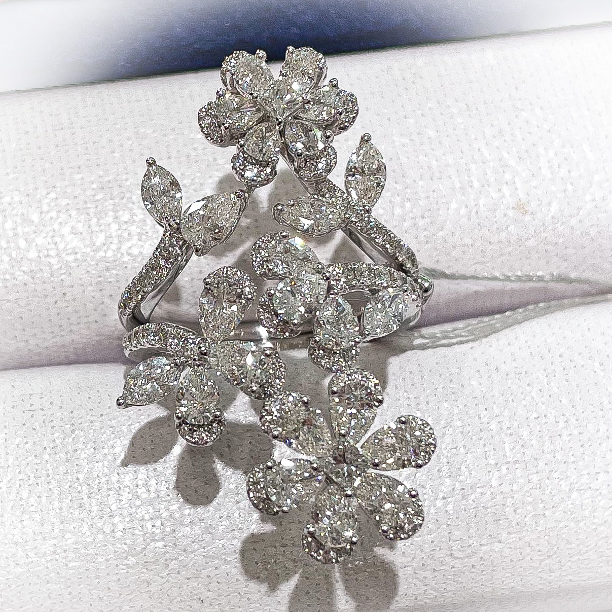 エクレブ 可変リング 2021年4月10日 by ijima エクレブ新作リング 写真をご覧いただくとわかりやすいでしょう。 リングが可変して、デザインが変わります。 最初の形は、中指でも人差し指でも素敵でしょうね。 可変の金具部分です リングが2本に分かれると中指・薬指に分解して同時にさします。 指のブローチって感じになります。