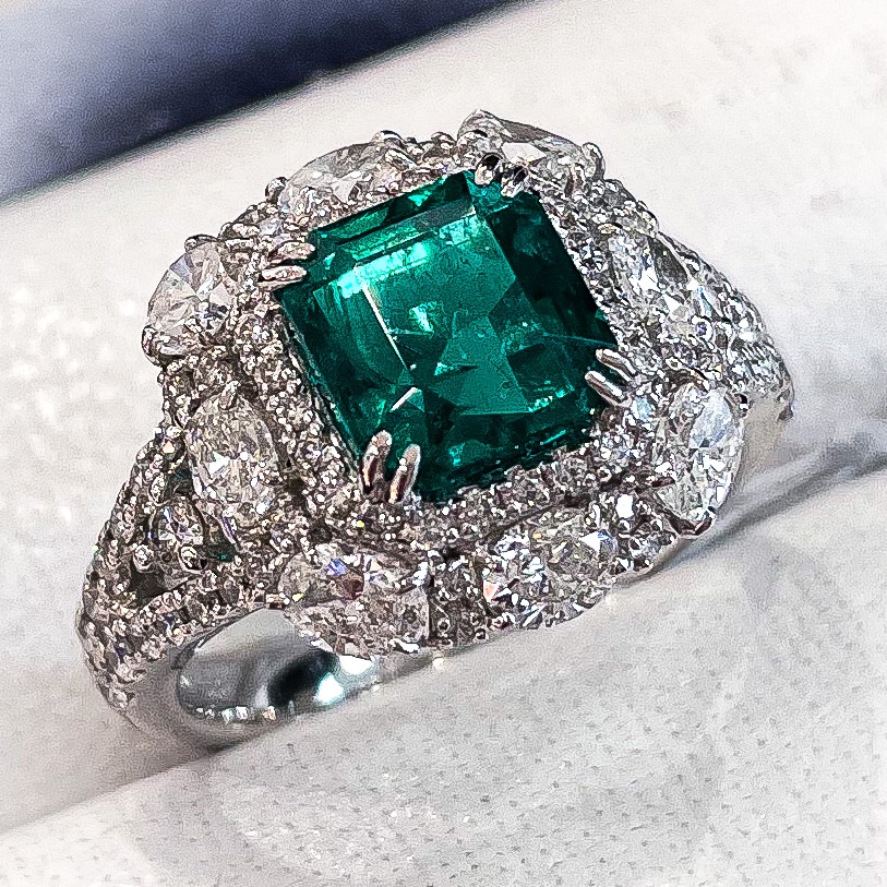 エメラルド Colombia Vividgreen Insignificant 2021年4月12日 by ijima エメラルド Colombia (コロンビア産産地証明付き) Vivid Green (鮮やかな緑色のコメント付き) Insignificant (インシグニフィカント・オイル含浸極少量) 中石 2.33ct 脇石 1.61ct