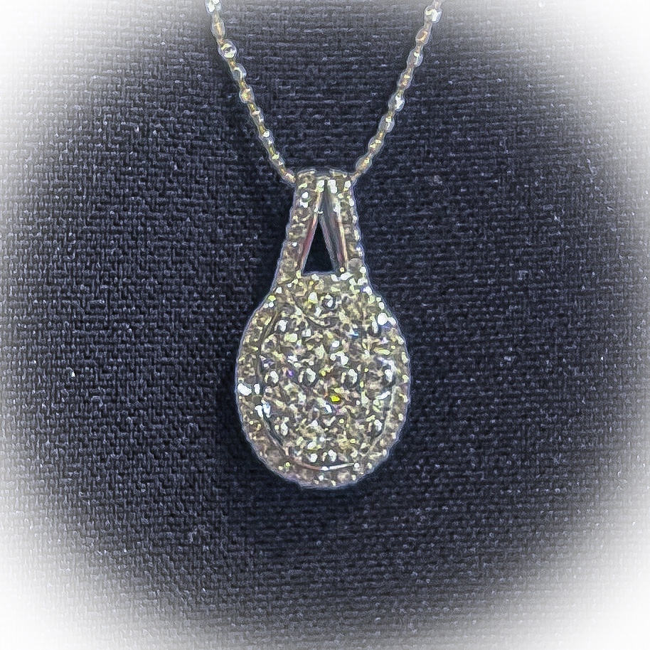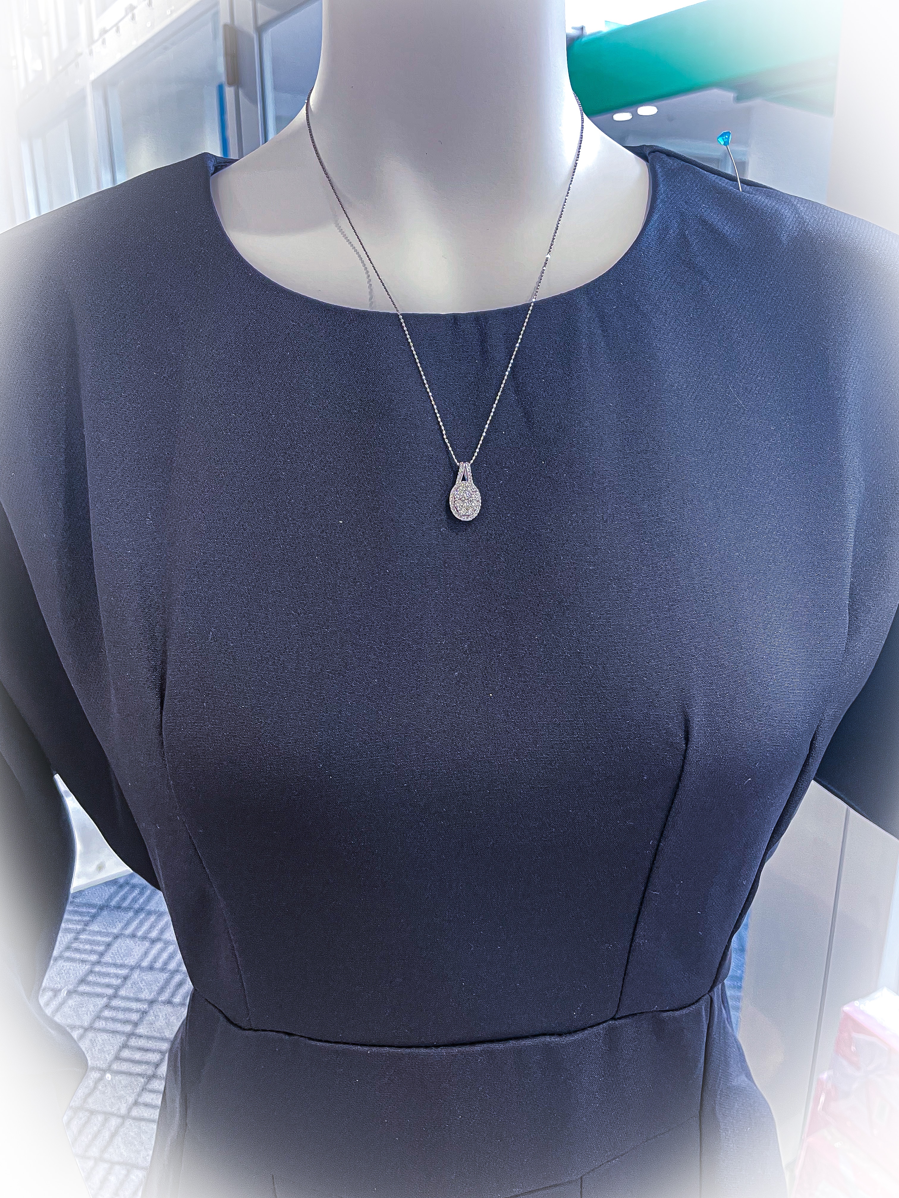 セッティングダイヤペンダント 2021年5月10日 by ijima K18WGダイヤモンドセッティングペンダント0.662ct ・ 0.153ct 10石のラウンドカットのダイヤモンドをセッティングして、大きなオーバルカットダイヤモンドのペンダントと見間違うくらい上品に仕上がっています。 爪の位置・ダイヤモンドのセッティングバランスなど、なかなかマネのできない技術です。 価格は 税込 264,000円
