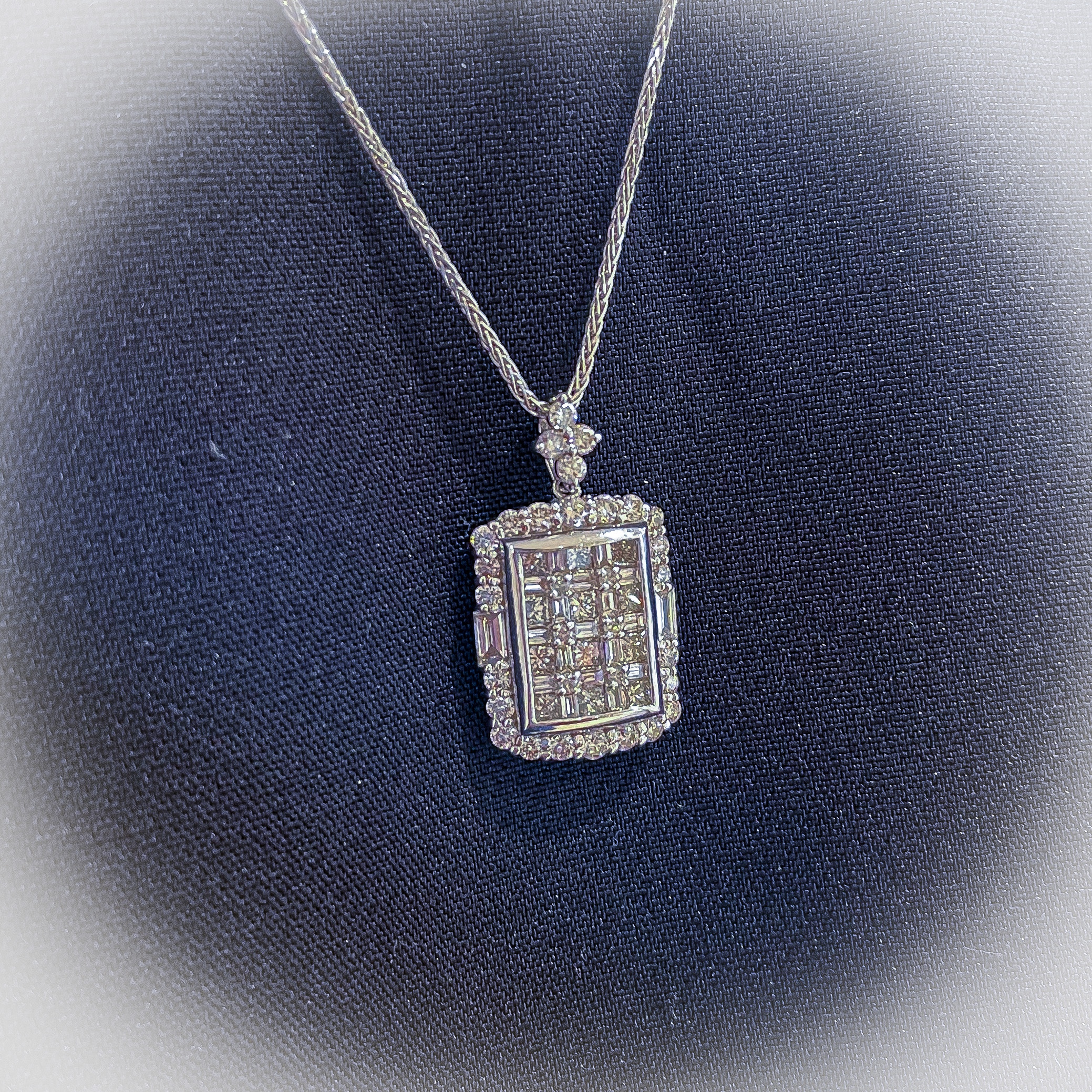 ミステリーセッティングペンダント 2021年5月15日 by ijima Pt ダイヤモンドミステリーセッティングペンダント1.50ct 1980年代に、ヴァンクリフが開発したミステリーセッティングという技術は、石の側面に溝をつけて、つなぎ合わす地金を上からは見えないように隠す細工でした。 その技術を応用し、ダイヤモンドという万物中で一番固い石にも挑戦しました。 間に6か所爪を付けましたが、これはわざとアクセントをつけるためです。 角ダイヤモンドは品がありますが、今回は、プリンセスカットを使用しているため、一層キラキラと輝きます。 価格は 税込み 286,000円