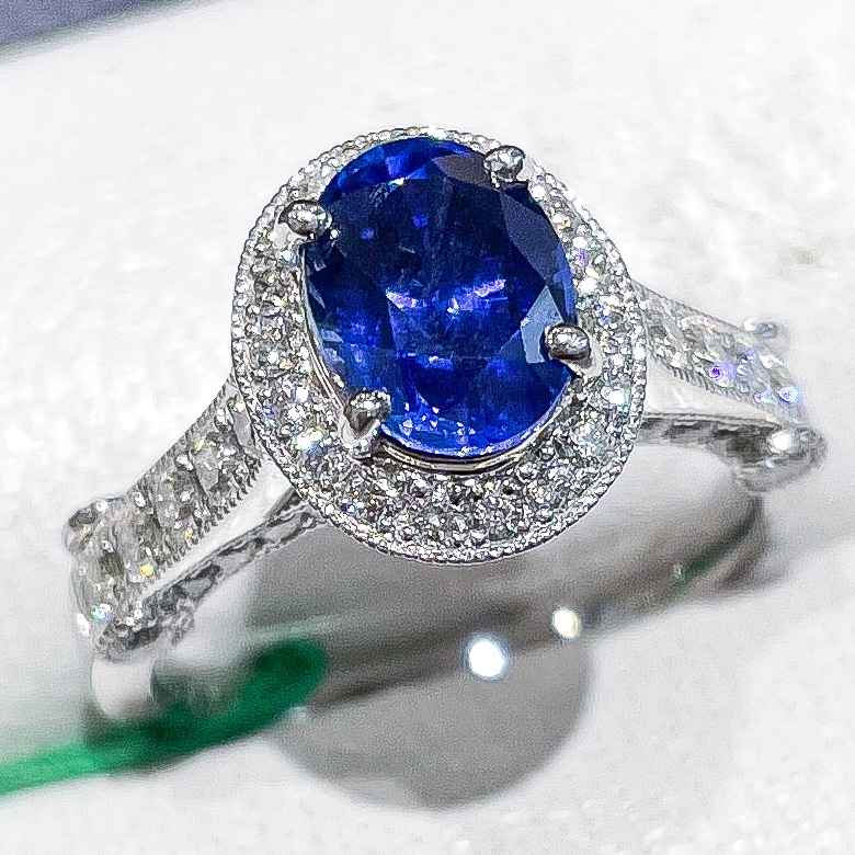 ロイヤルブルーサファイア スリランカ産 2021年6月2日 by ijima ロイヤルブルーサファイア スリランカ産 サファイアの最高峰の称号「ロイヤルブルー」 そして、希少な産地のスリランカ。 一世紀前は、主産国であったが、近年は、美しいサファイアは採掘が減っている。 中石 2.23ct としっかり大きい 脇石 1.04ct 少しクラシックなデザインが斬新に感じる