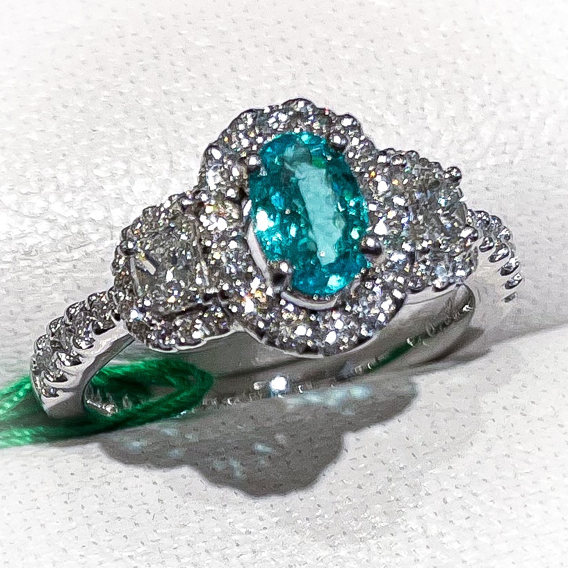 パライバトルマリン 2021年6月8日 by ijima ブラジル産 パライバトルマリン 世界的な人気によりブラジル産パライバトルマリンは爆発的に値上がりしています。 アフリカナミビア産の美しいパライバトルマリンが、発見されたので少しは落ち着くと思いましたが、まったく衰えずに値上がりし続けています。 昨日より今日が、2割高いといった具合に。 中石 0.43ct ブラジル産 脇石ダイヤモンド 0.191\0.210ct G VS1 脇石ダイヤモンド 0.52ct