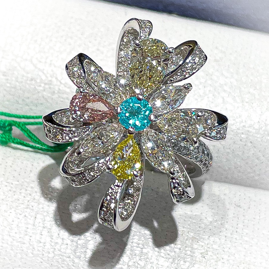 パライバトルマリン カラーダイヤモンドリング 2021年6月10日 by ijima パライバトルマリン&カラーダイヤモンド 人気のブルー系ブラジルパライバトルマリンに希少価値がますます高くなっているカラーダイヤモンドをミックスさせて、贅沢なファッションリングにしました。 中石パライバトルマリン 0.208ct カラーダイヤモンド 0.501ct M VVS2 ps/ 0.232ct G SI1 ps/ 0.230ct F IY VS2/ 0.307ct FOP SI2 脇石ダイヤモンド 0.230ct/1.50ct