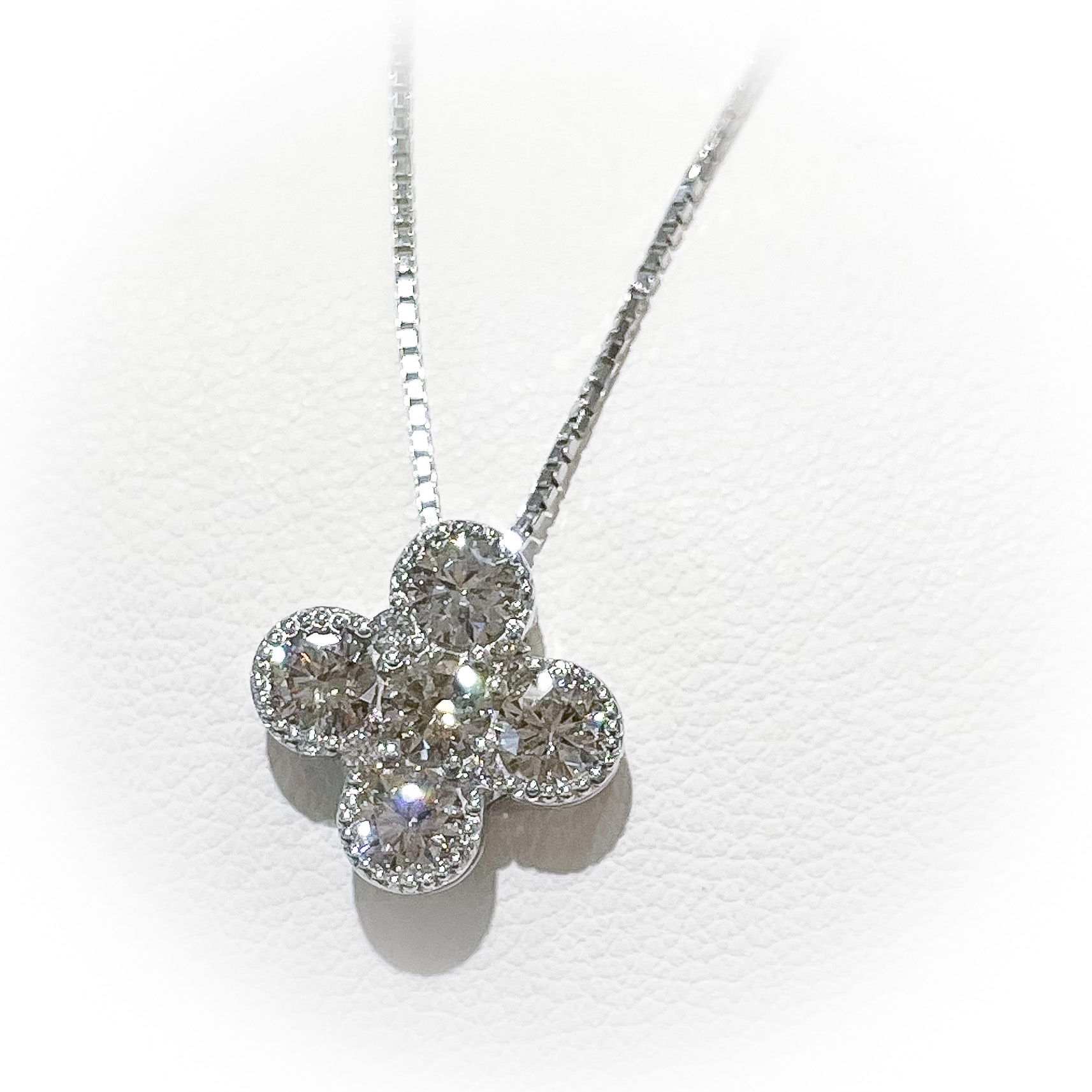 ダイヤモンドペンダント 2021年6月19日 by ijima 四つ葉クローバペンダント PT枠 PTチェーンを使用しています。 ダイヤモンドは、合計 1.00ct 入り 縁取りには、ミルグレイン(ドット打ちこみ)仕上げを丁寧に施しています。 価格は、¥264,000税込