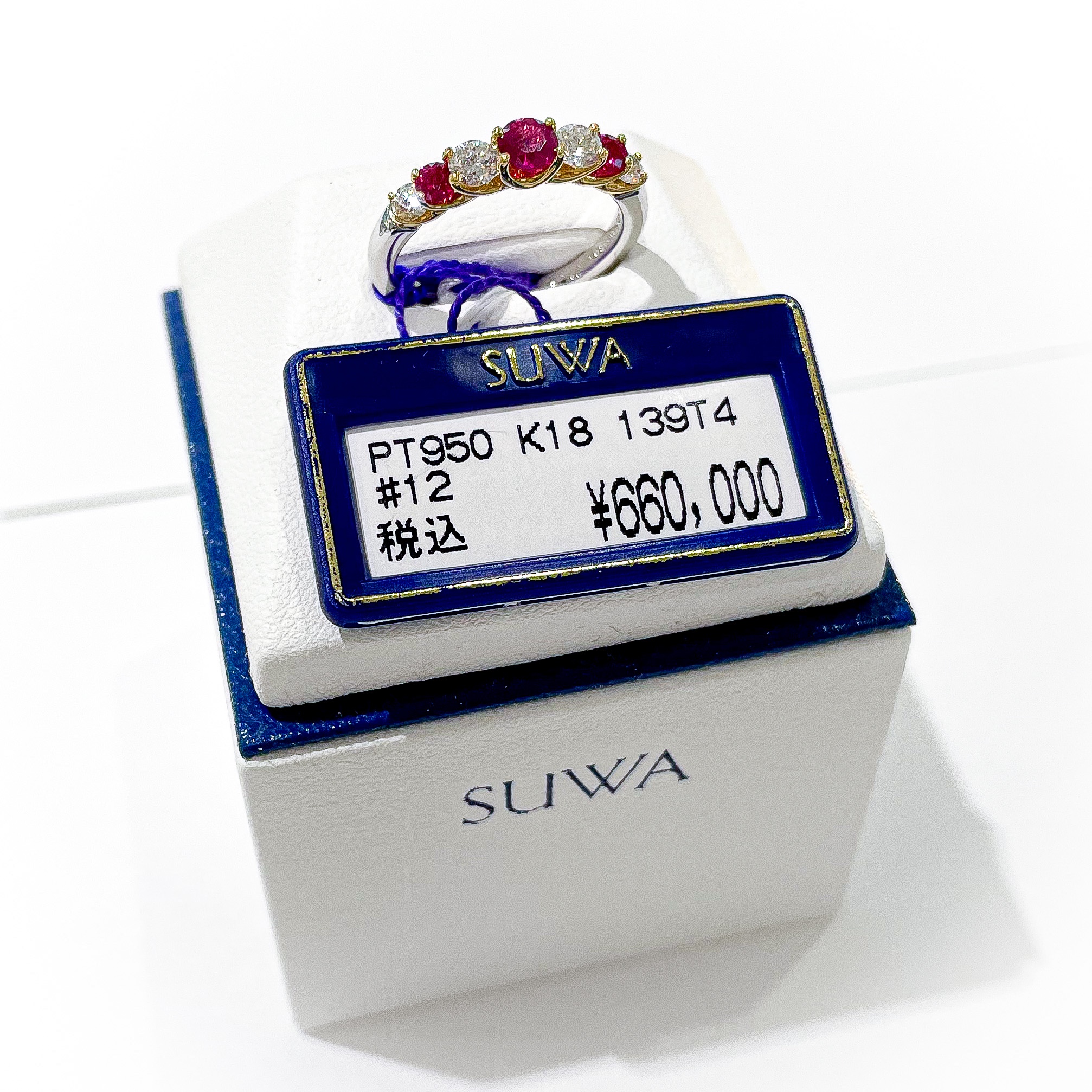 SUWA ジュエリー店頭紹介 2021年8月16日 by ijima Pt950/K18 ルビー/ダイヤモンドリング ルビー 0.44ct ダイヤモンド 0.43ct ルビーをより美しく魅せるためにセッティングの爪にK18を使用しています。