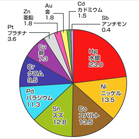 金属にはアレルギーを起こしやすい金属と起こし難い金属があります。
