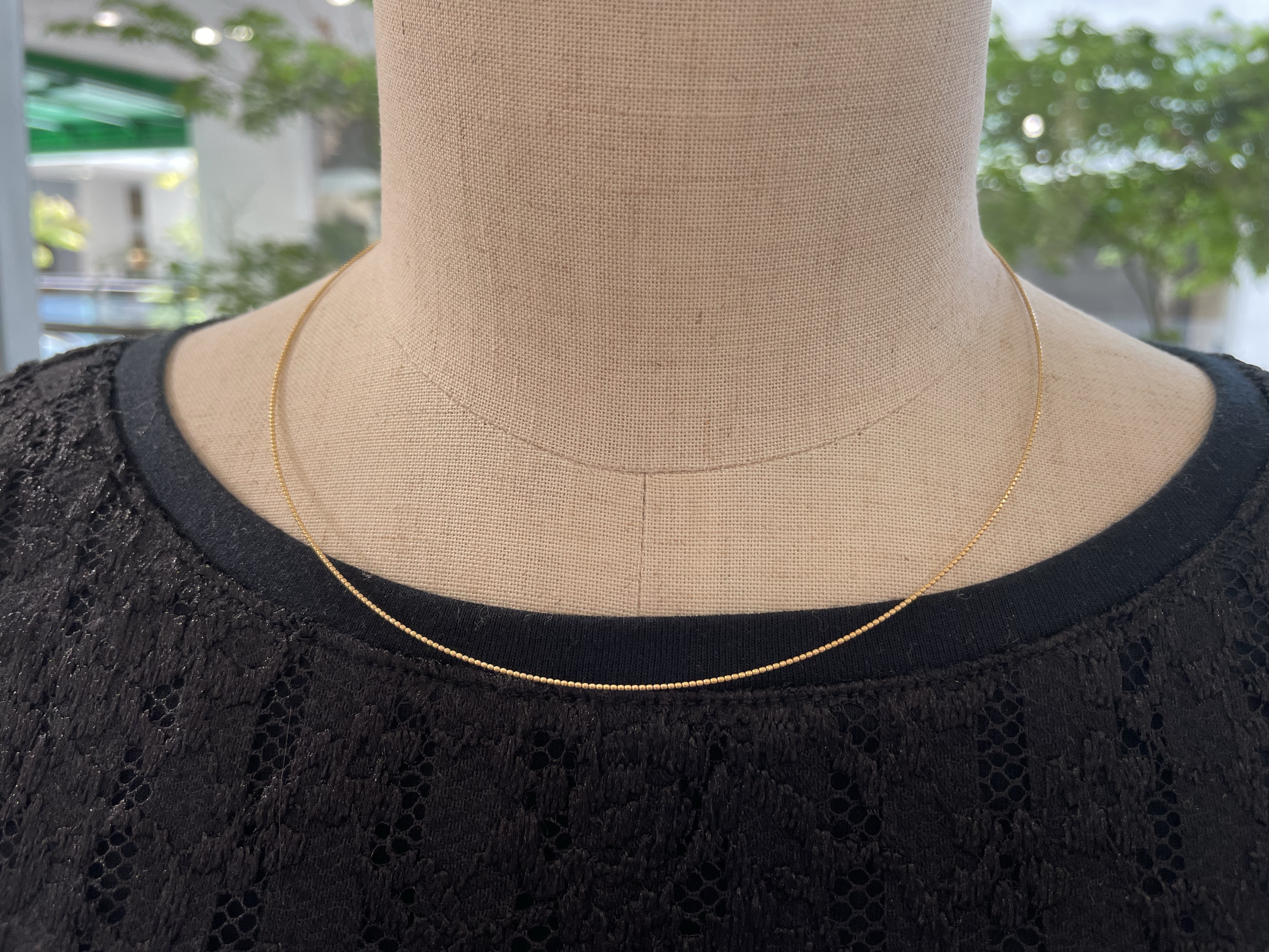アイオメガネックレス 2021年10月16日 by ijima K18YG アイオメガネックレス 税込22,000円 チョーカーでペンダントを着けるときに、ペンダントの重みでネックチョーカーラインが鋭角に垂れ気味になりますよね。 やはり、気品高くチョーカータイプでクビに沿ったネックレスLINEをキープしたいです。 そこでオメガタイプで断面図が真円のアイオメガが重宝しますが、このタイプはフリー金具にするとペンダントカンが通らないという欠点がありました。 そこで、開発されたのが、この商品です。 お客様の困った要望を実現に向けて一生懸命に努力を重ねた結果です。