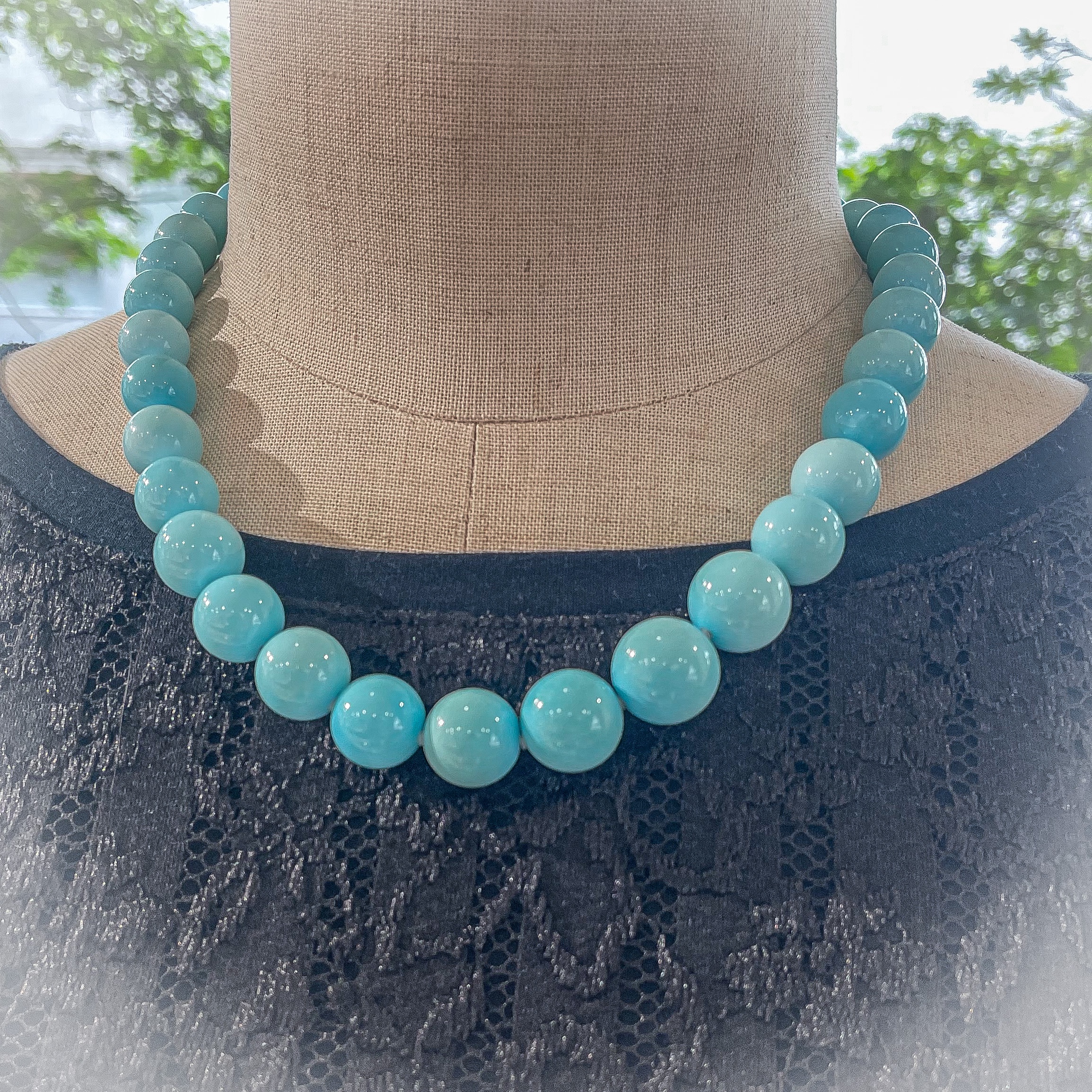 トルコ石ネックレス 2021年10月29日 by ijima トルコ石は、地球上でわずかな場所にしか見つかりません。その場所は、酸性で銅を豊富に含む地下水が下にしみこみ、リンやアルミニウムを含む鉱物と反応する乾燥した不毛の地域です。 この堆積プロセスの結果、多孔性で半透明〜不透明の水和銅およびリン酸アルミニウムの化合物ができます。 天然で美しく、蜘蛛の巣のような母岩の混ざりもない丸珠は奇跡にちかく、大変希少で人気があります。 安く出回っているのは、着色や再結晶させた、偽物です。 天然トルコネックレス 無処理 13mm 丸珠チョーカー 660万円税込
