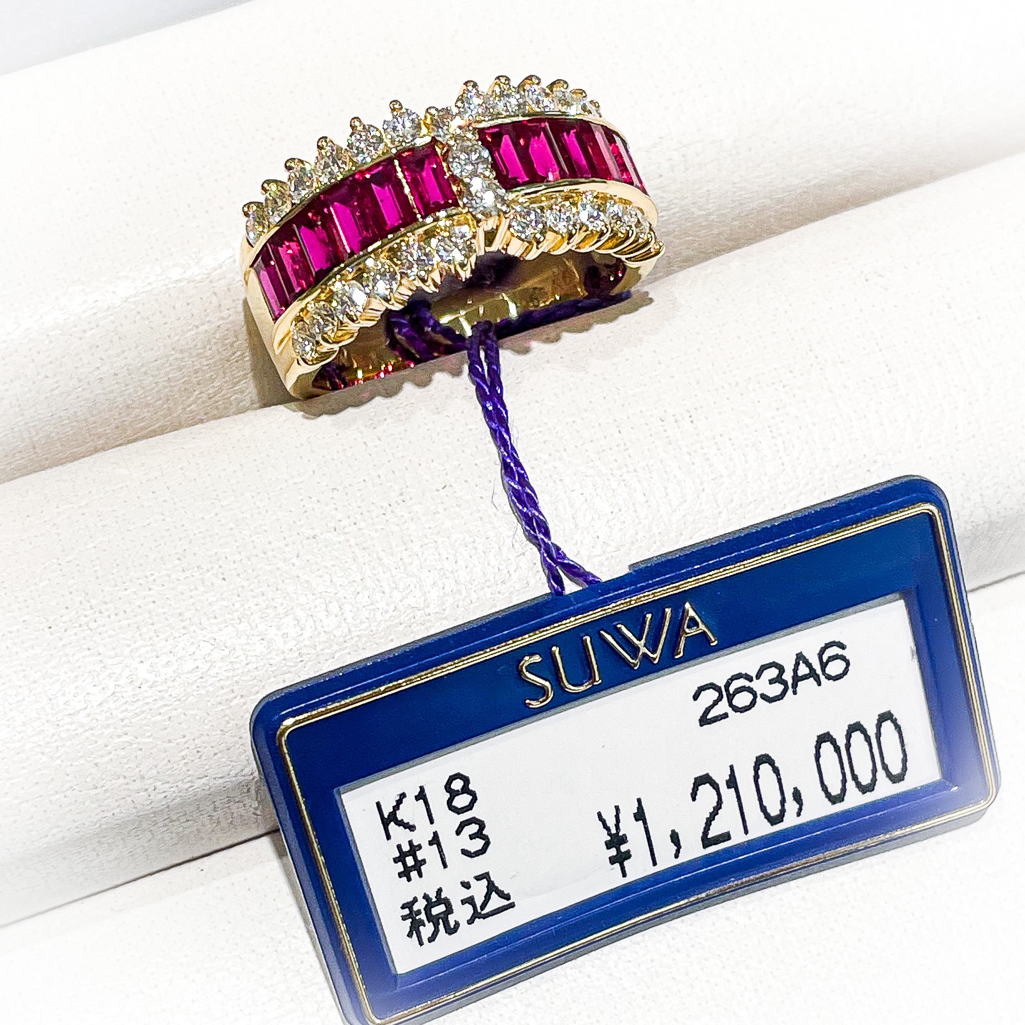 SUWA ルビー 2021年10月30日 by ijima SUWA K18 ルビーリング SUWA ルビー/ダイヤモンドリング K18 ルビーはミャンマー・モンスー産の濁りのない澄んだ赤色の美しいルビーを使用。 レールの枠組みに収めるために縦の長さや幅はもちろん、石の深さまでカットで揃えています。 色むらを感じないのは、そこまで拘っているから。