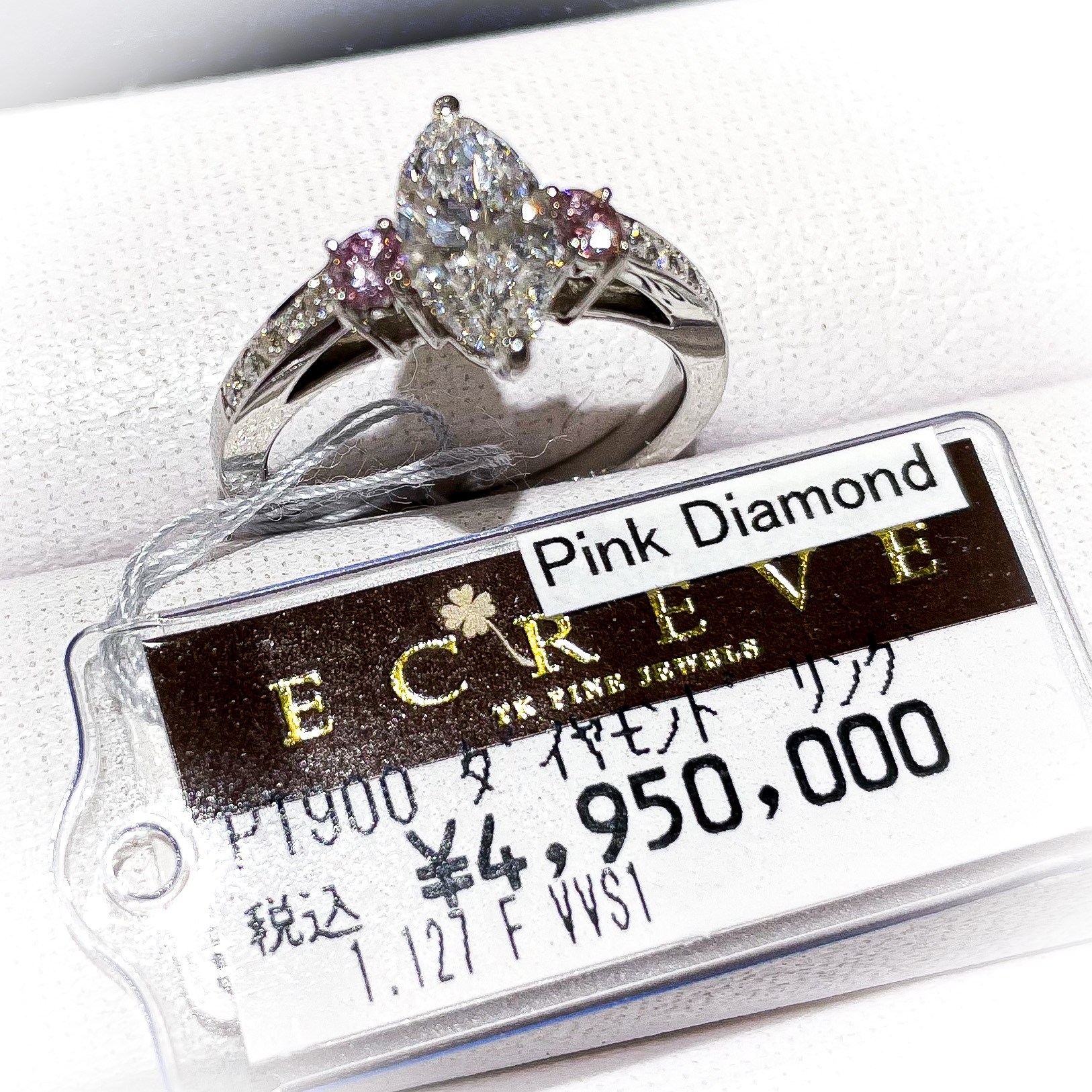 脇石にピンクダイヤモンドを 2021年12月13日 by ijima ピンクダイヤモンドの高騰により、材料として取引されてきたメレサイズのピンクダイヤモンドも、同様に3~5倍に値上がりしています。 まだ通常価格で取引されていたころ、エクレブは材料としてピンクダイヤモンドのメレサイズを集めていました。 値上がり前の価格のまま、ご提供しています。(昔の価格ででています・・・) 中石はもちろん、文句なしの 1.127ct VVS1 F マーキス なにより、マーキスの形が美しいプロポーションです。 ピンクの装飾が高価なジュエリーをさらに際立たせています。